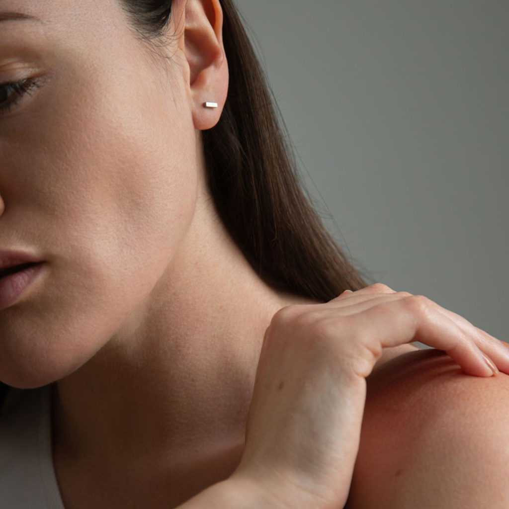 The tiny bar studs from A Weathered Penny will be your new jewellery staple. Crafted in titanium, the studs are waterproof and tarnish free so you can wear them no matter what you are doing. The minimal earrings are perfect for everyday wear. Pair them with other earrings from the A Weathered Penny collection for the perfect stacked look.