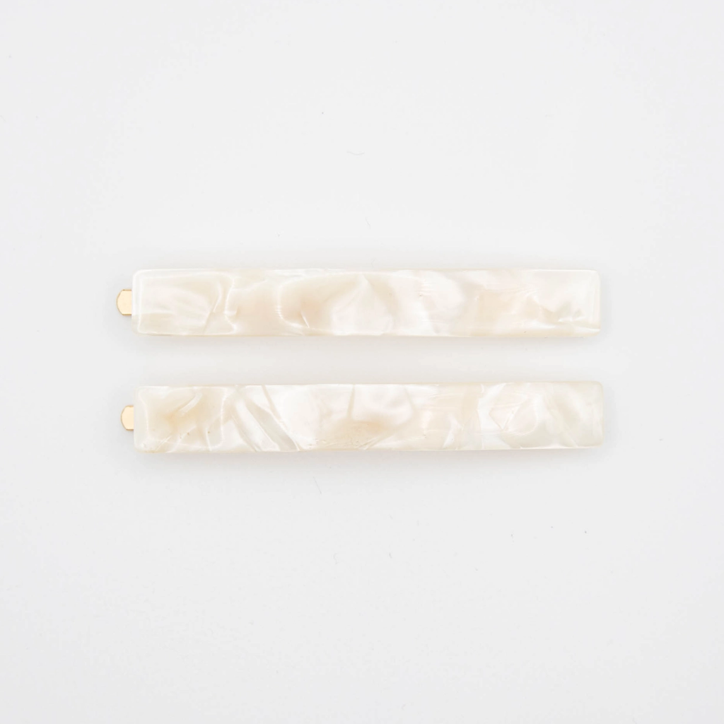 The pearl white hair clips from Pepper You merge simplicity, beauty, and function. This set of two hair clips open and slide in for a really easy grip that feels secure without snagging or pulling on your hair. Style them together or solo for an easy way to polish your look.