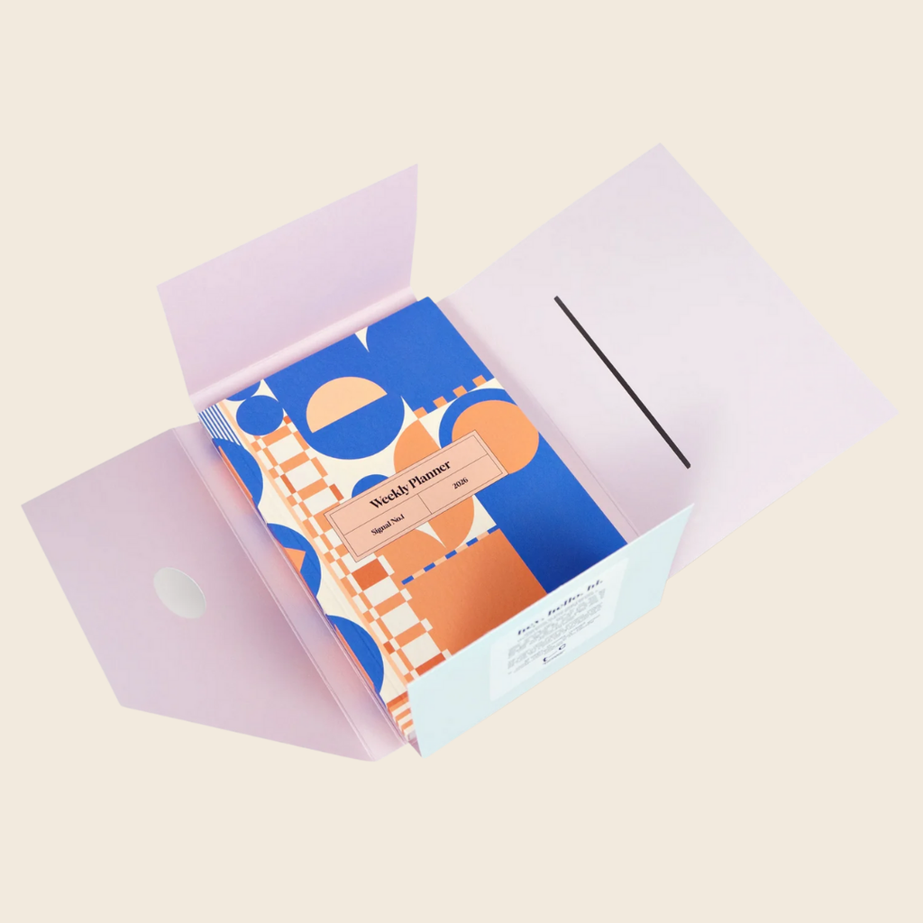 The Signal 2026 pocket weekly planner pairs smart structure with bold design. Designed by The Completist, it features a crisp geometric print in blue and peach, this compact A6 planner is the ideal tool for keeping your year on track, without cramping your style (or your bag).