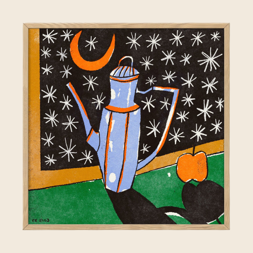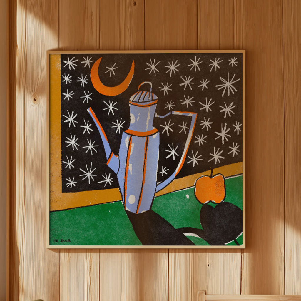 Enikő Eged, a Budapest-based artist, blends traditional and modern mediums to create emotionally rich works. She explores illustration, collaborative projects, and ceramic painting using both analogue and digital techniques and is inspired by animals, emotions and folk art, particularly abstract and floral patterns. The prints have been produced by PSTR Studio, a group of passionate art lovers who believe that everyone deserves to experience the joy of owning beautiful, meaningful art.